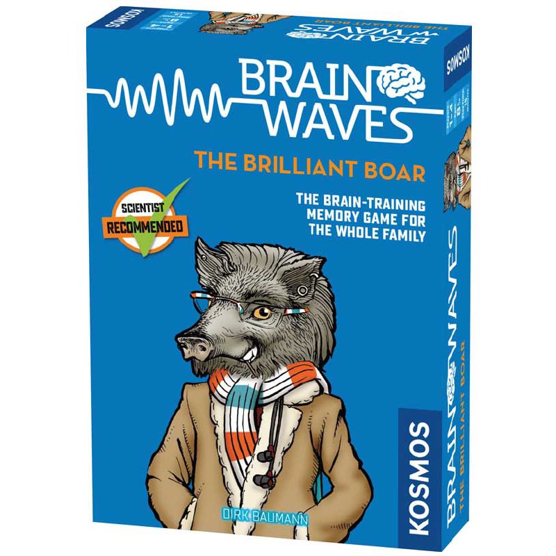 The Brilliant Boar by Kosmos is recommended for 1 to 4 players, ages 8 to adult, and plays in about 15 minutes. Each player takes cards showing different animal portraits on their reverse side into their hand. They can look at the cards briefly when they draw them, but then must face the cards away from them. On a player's turn, they can either take the top card from the deck into their hand or play one of their cards onto the table, attempting to make as many pairs as possible from the card just played and those already face up on the table. Whoever collects the most cards wins.