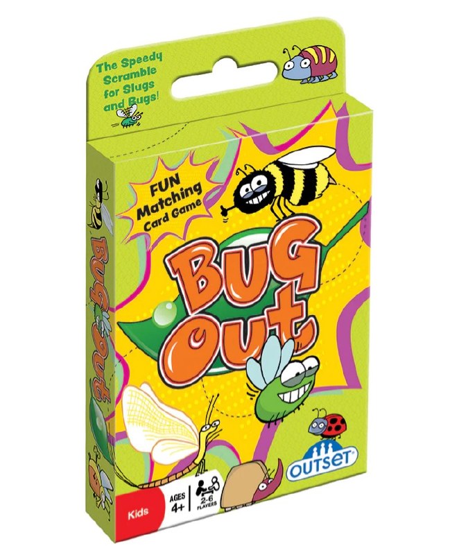 Bug Out from Outset is a card game for 2-6 players ages 4 and up. Get ready to Bug Out with this fun matching card game! Be the first to catch all your matching bug cards and bug out!
