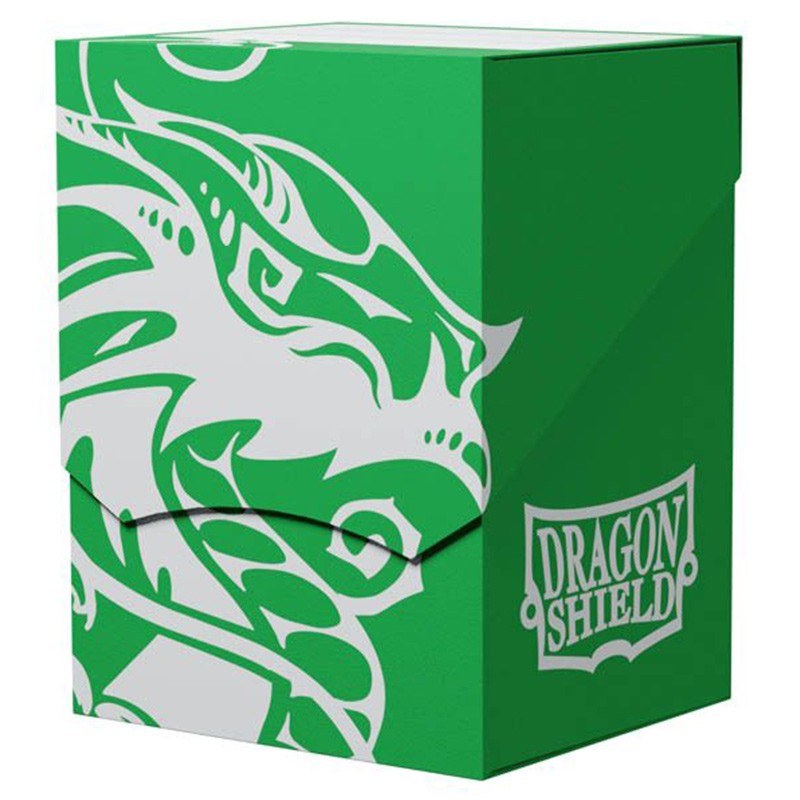 Dragon Shield Deck Shell - Green/Black - by Arcane Tinmen is a Strong and Sturdy Flip Container Storage box for 75 double-sleeved cards and includes a deep cut-out for easy access, safe snug-fitting lid, generous writing field and divider.