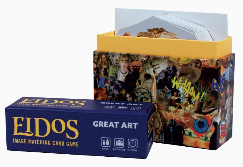 Eidos: Great Art by Unemployed Philosophers Guild is a card-matching game for 2 to 8 players ages 8 to adult and plays in 15 to 30 minutes. Each deck has 73 octagonal cards, each with 9 different images. While no 2 cards are the same, any 2 cards have only 1 image in common …but can you find it first? This game is quick to learn and handy for travel and in the classroom too.