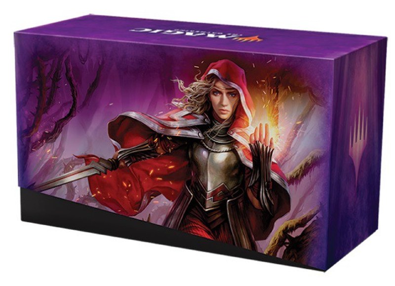 The Bundle for the Throne of Eldraine set of Magic The Gathering contains: a Throne of Eldraine, 10 Throne of Eldraine Booster Packs, an alternate art foil Piper of the Swarm card, 20 foil basic lands, 20 non-foil basic lands, and 1 special oversized spindown life counter.