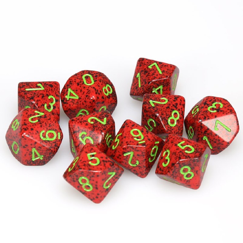 10-Dice d10 set by Chessex. Speckled Strawberry. CHX 25104.