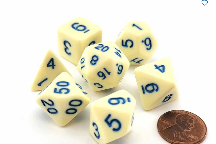 Polyhedral 7-Die set by Koplow. Lemon features a light yellow color with blue numbers. 19729