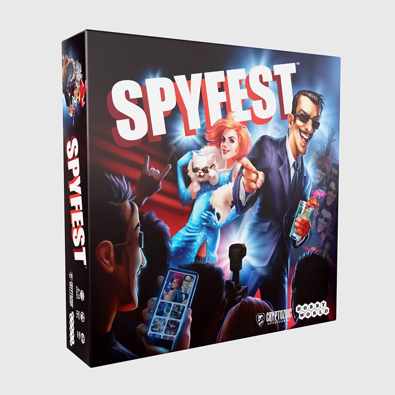 Spyfest by Cryptozoic is a team-based detective party game for 4 to 10 players, ages 12 to adult, and plays in about 30 or more minutes.